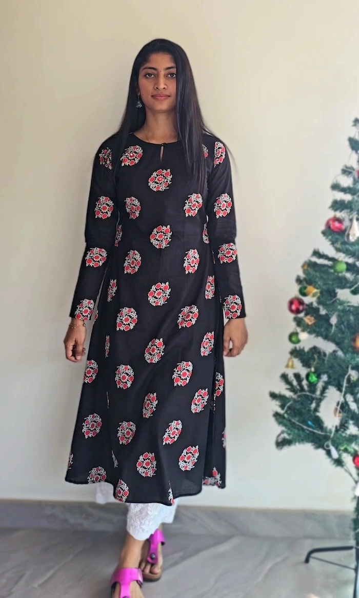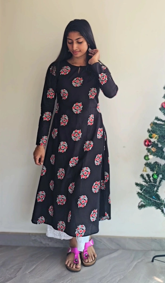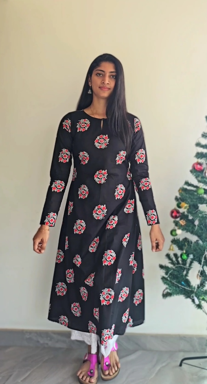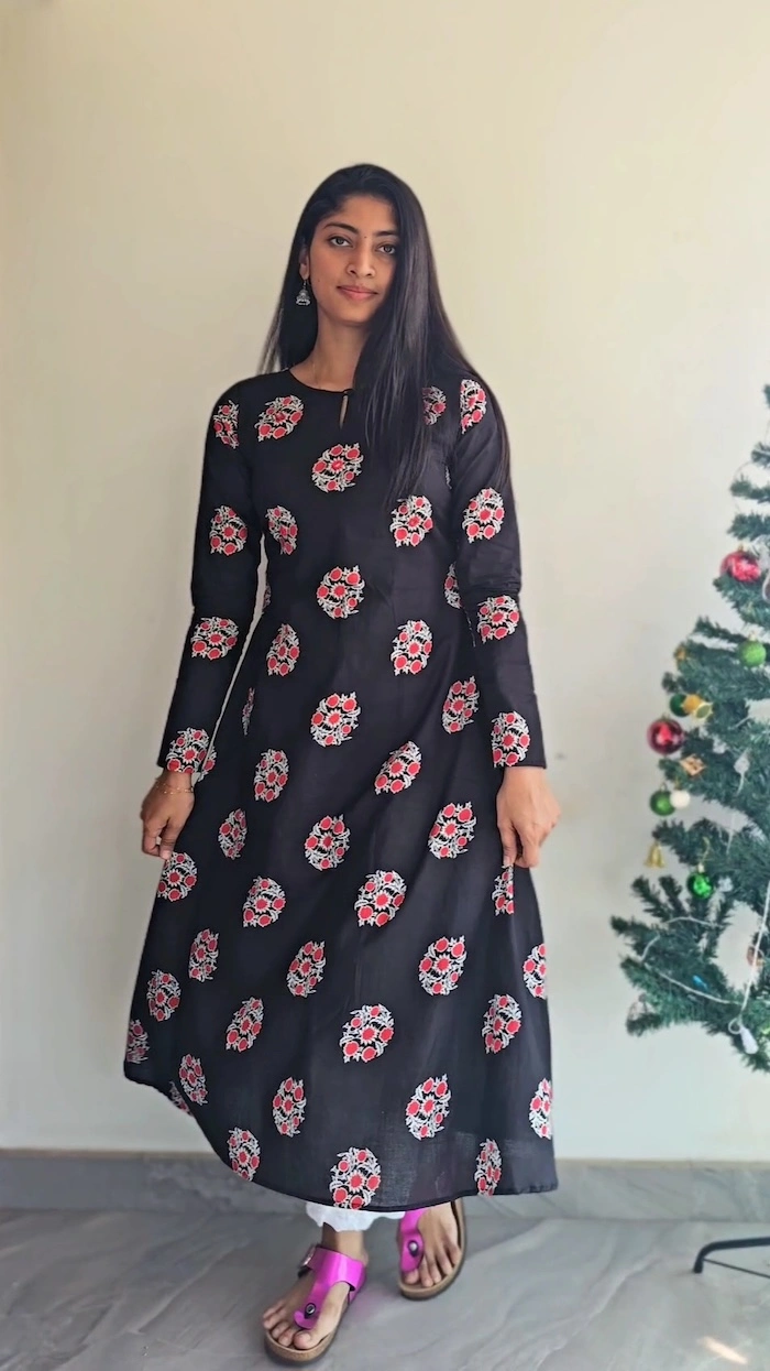 Add a touch of handcrafted elegance to your wardrobe with this Black Cotton Block Print Kurti with Mirror Work from MIRAY. Made from premium breathable cotton, this kurti features delicate floral block prints enhanced with subtle mirror work, adding just the right hint of festive charm while keeping it perfect for everyday wear.