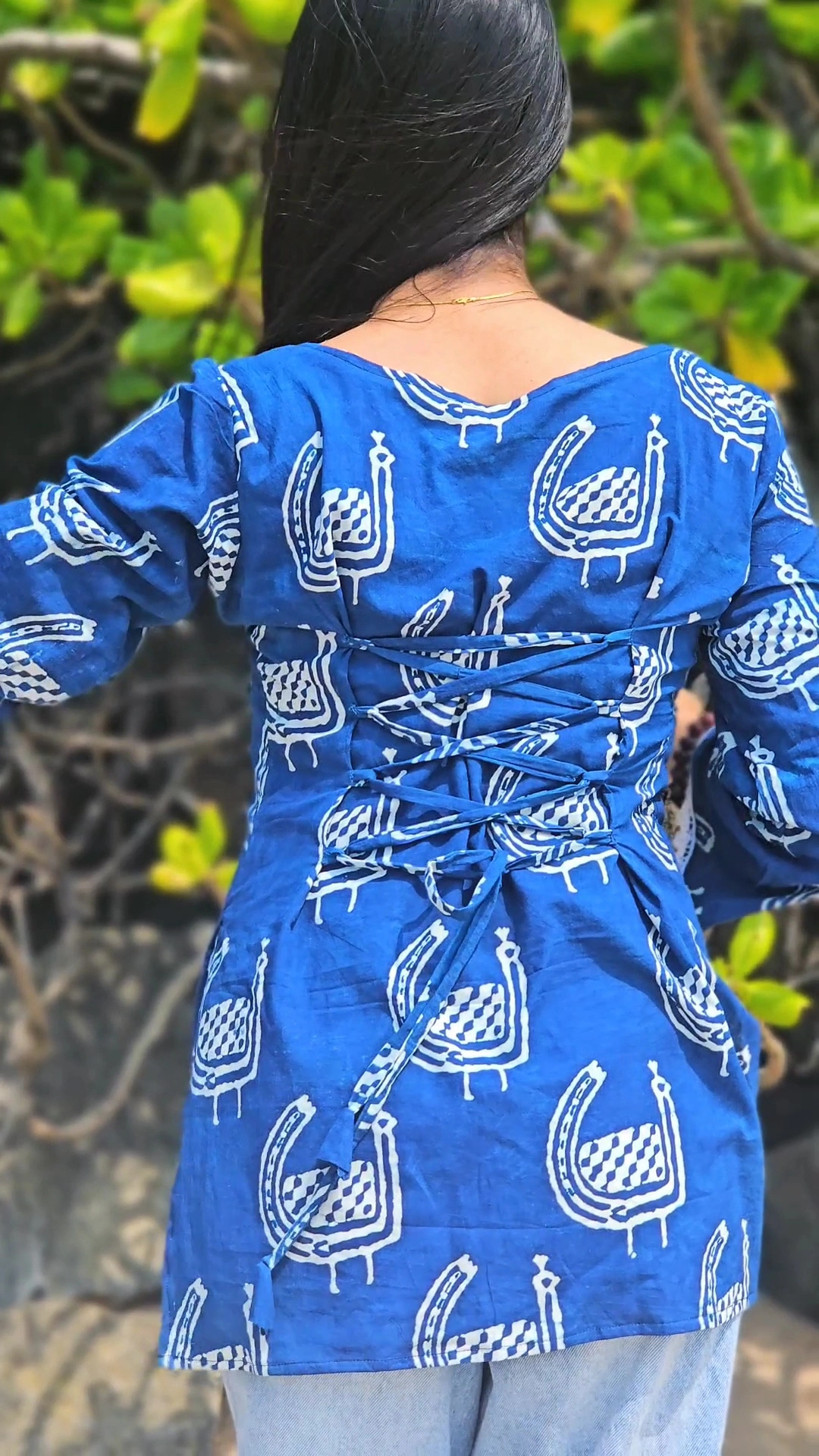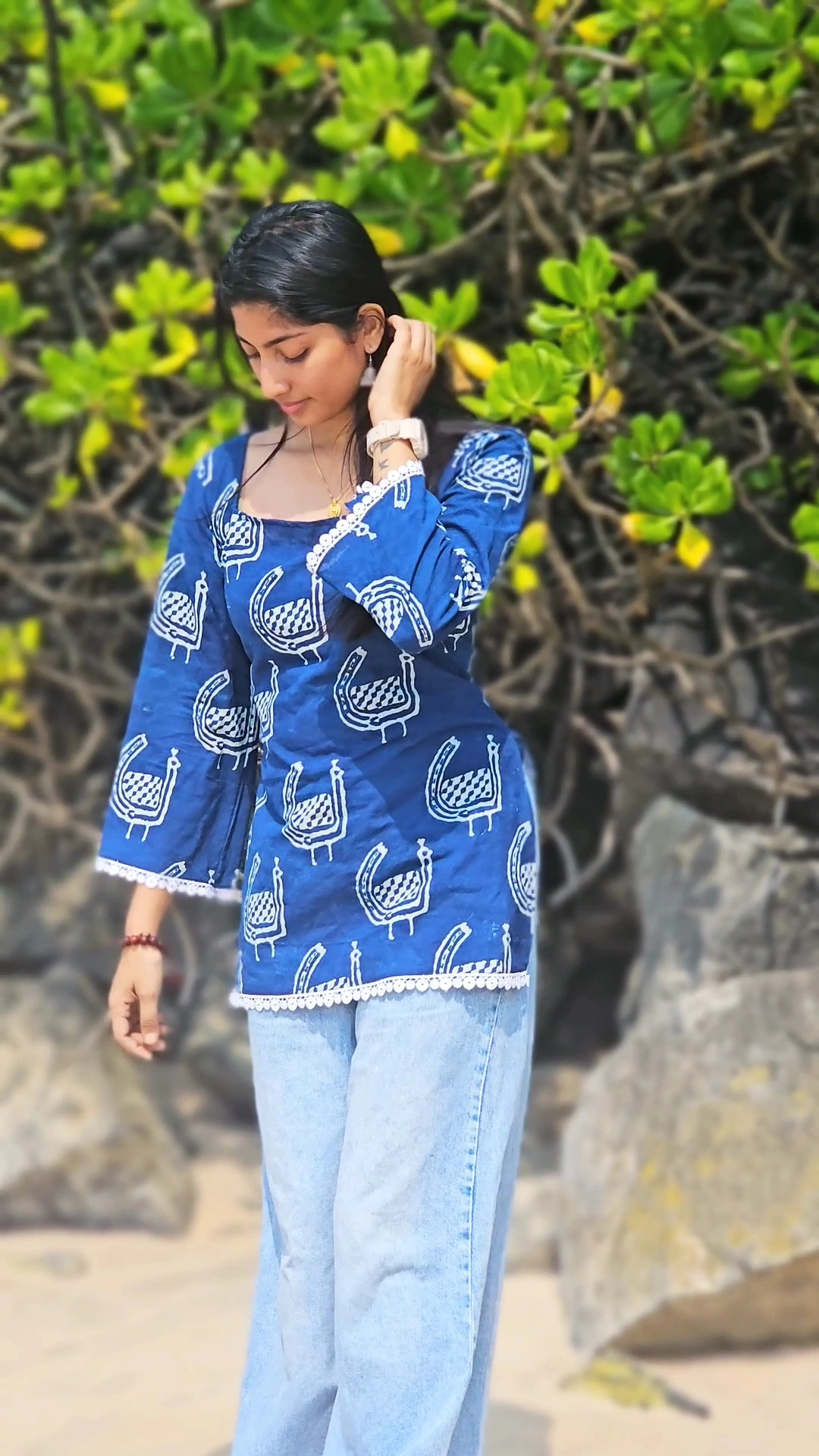 Add a touch of elegance to your everyday wardrobe with this Indigo Cotton Block Print Short Top with Lace Detailing from MIRAY. Crafted from 100% pure, breathable cotton, this top showcases traditional hand block prints that celebrate authentic Indian craftsmanship.