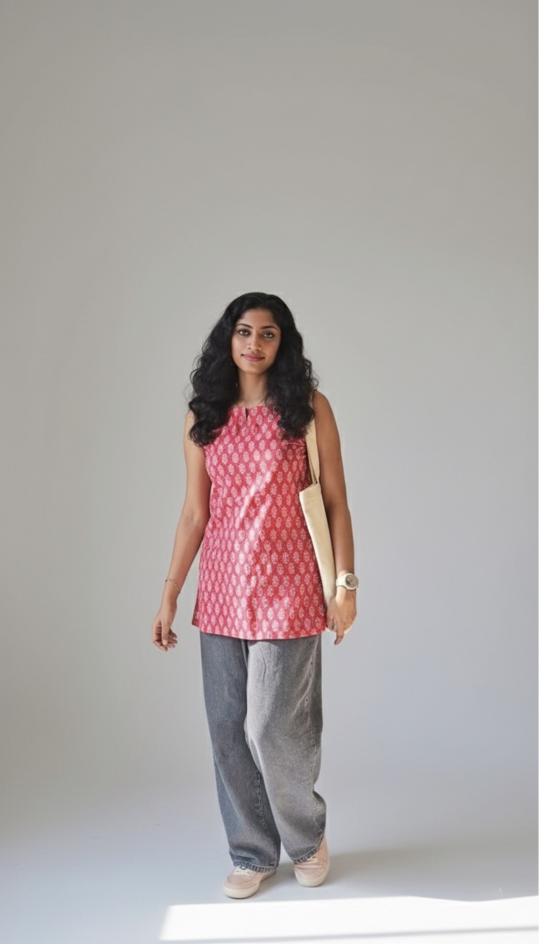 MIRAY Women’s Sleeveless Cotton Kurti – Red Hand Block Printed Tunic Top for Casual & Office Wear